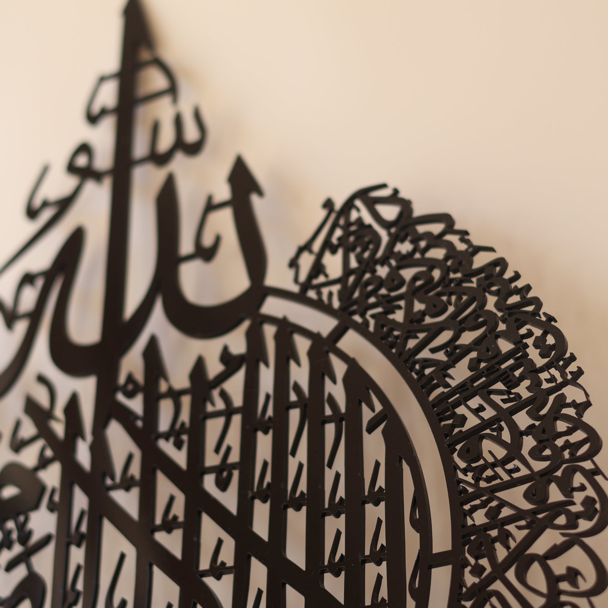 Crafted for the conscious heart and reflective home, this piece does more than adorn walls—it anchors the soul in remembrance. Each letter is a silent fortress, each curve a whisper of divine watchfulness. The sleek, modern black material complements its spiritual gravity, offering contrast and clarity in both form and meaning.